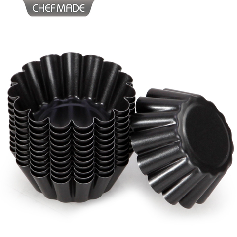 Chefmade 12 unid/set plata negro antiadherente para hornear 2,5 pulgadas Mini bandeja para tarta para hornear acero al carbono molde de latas para hornear horno